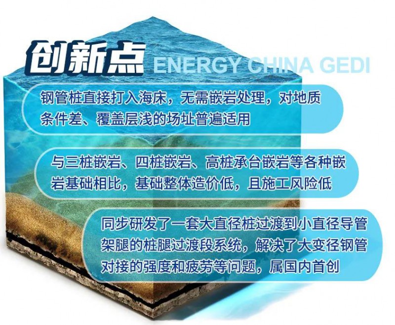 在广东院硬核技术的支持下,老大难的嵌岩导管架机位纷纷转型成功,脱胎换骨成为新型大直径非嵌岩四桩导管架机位。