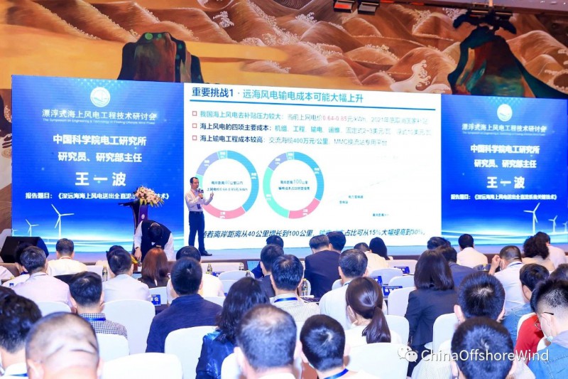下午上半场由中国海上风电协会常务副会长柳地主持。中国科学院电工研究所研究员、研究部主任王一波、明阳智慧能源集团股份公司总工程师贺小兵、中国船舶集团海装风电股份有限公司海上浮式风电装备总设计师董晔弘、招商局工业集团首席科学家徐立新发表了主题演讲。