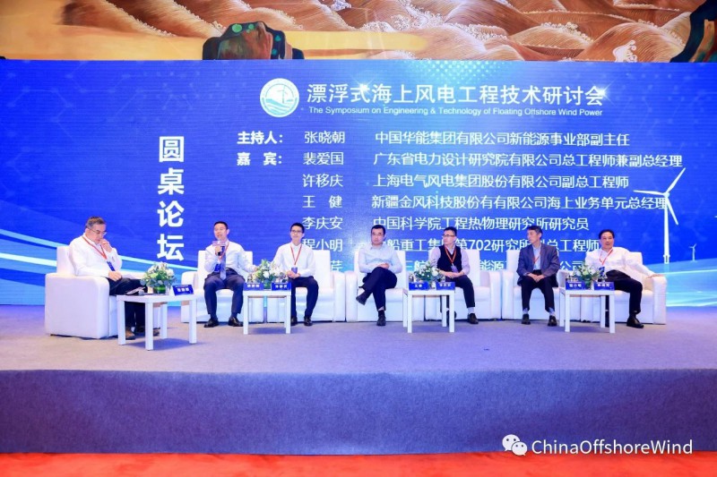圆桌论坛以《我国漂浮式海上风电创新与发展》为主题,由中国华能集团有限公司新能源事业部副主任张晓朝主持。中国科学院工程热物理研究所研究员李庆安、广东省电力设计研究院有限公司总工程师兼副总经理裴爱国、新疆金风科技股份有限公司海上业务单元总经理王健、中船重工集团第702研究所副总工程师程小明、上海电气风电集团股份有限公司副总工程师许移庆、中交三航(上海)新能源工程有限公司总工程师张成芹参与了圆桌论坛。