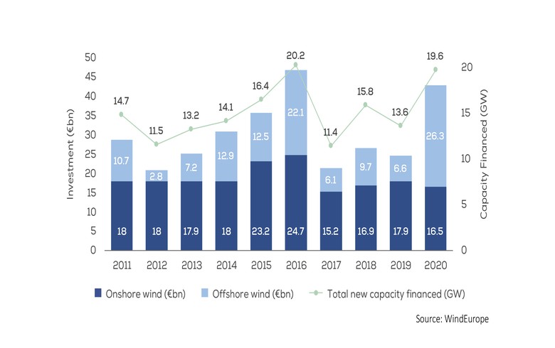 欧洲风电协会WindEurope近日发布的一份报告显示,尽管发生了大流行,但欧洲在2020年对新的风电场的投资达到428亿欧元,是2016年之后的第二高纪录,比2019年增加了约75%。
