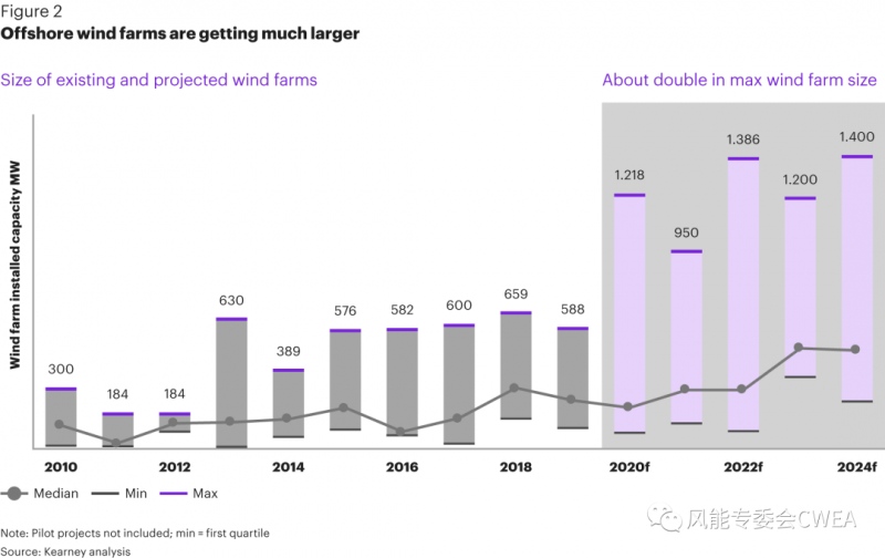 建设超过1GW的大型风电场,从而获得规模经济,是未来海上风电场成本竞争的新标准。所有的玩家都在往前发展。为了在竞争中不至于落伍,各个玩家必须迅速定位并确定各种机会。具体从哪儿开始,取决于玩家的成熟度。无论如何,加速学习曲线很重要。对于新进入者,这可能意味着需要从较小的角色或较小的范围开始,然后迅速过渡到更大、更复杂的角色。
