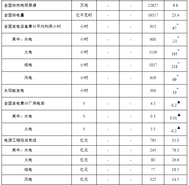 注:1.全社会用电量为全口径数据,全国供电量为调度口径数据。2.“同比增长”列中,标*的指标为绝对量;标▲的指标为百分点。