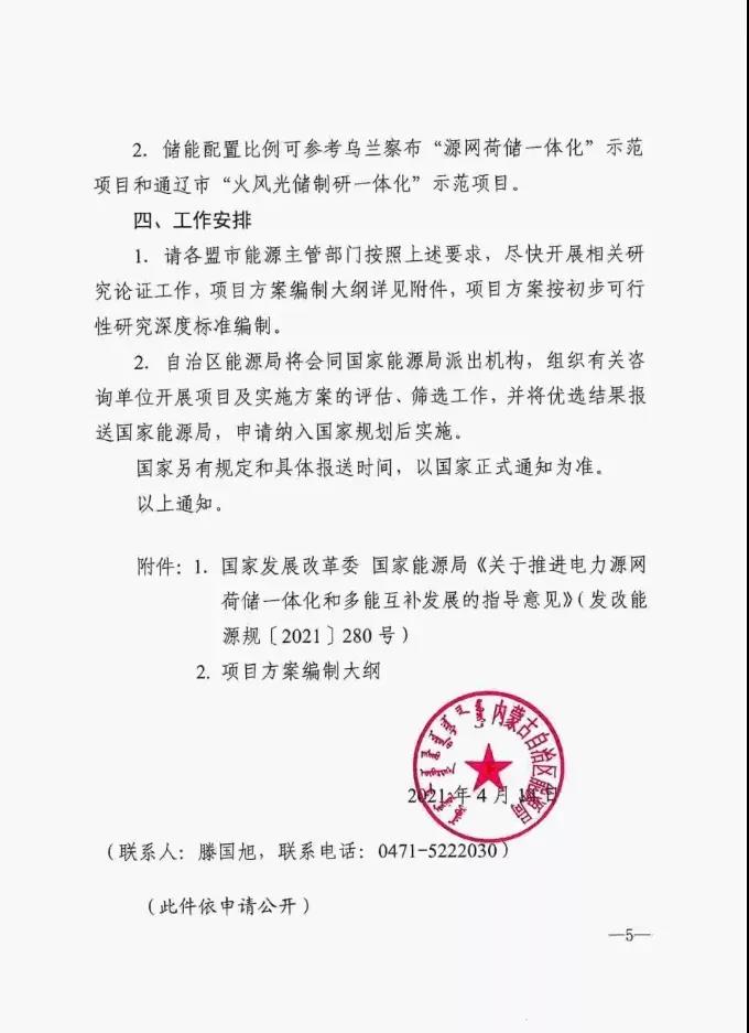6.项目实施后,原则上大电网不予调峰。储能配置比例可参考乌兰察布“源网荷储一体化”示范项目和通辽市“火风光储制研一体化”示范项目。