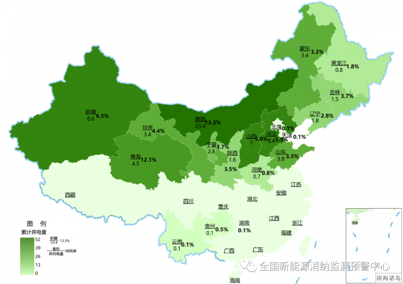 中东部和南方地区总体消纳情况较好,部分地区出现少量弃风弃光。