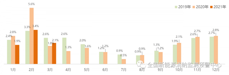 由于去年四季度新能源新增装机规模较大,2021年一季度青海弃风弃光同比明显增长,陕西、河南和贵州等地区也出现了弃风弃光增长现象,应在落实消纳条件的基础上,合理安排新增项目并网投产时序。特别是青海一季度弃风率已跃升至全国最高,需进一步提升青海-河南特高压通道送电能力,加快建设新能源配套并网送出工程,优先解决存量项目的消纳问题。