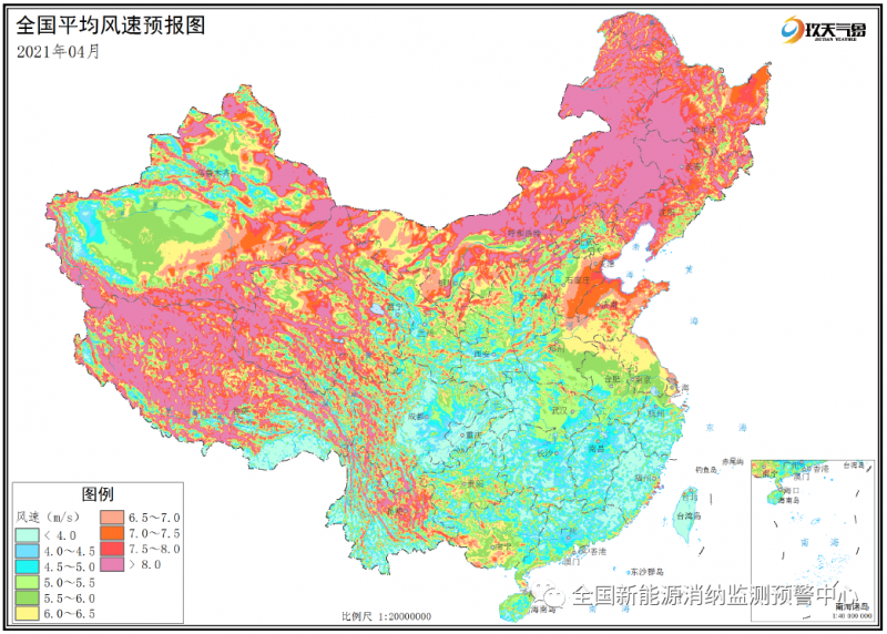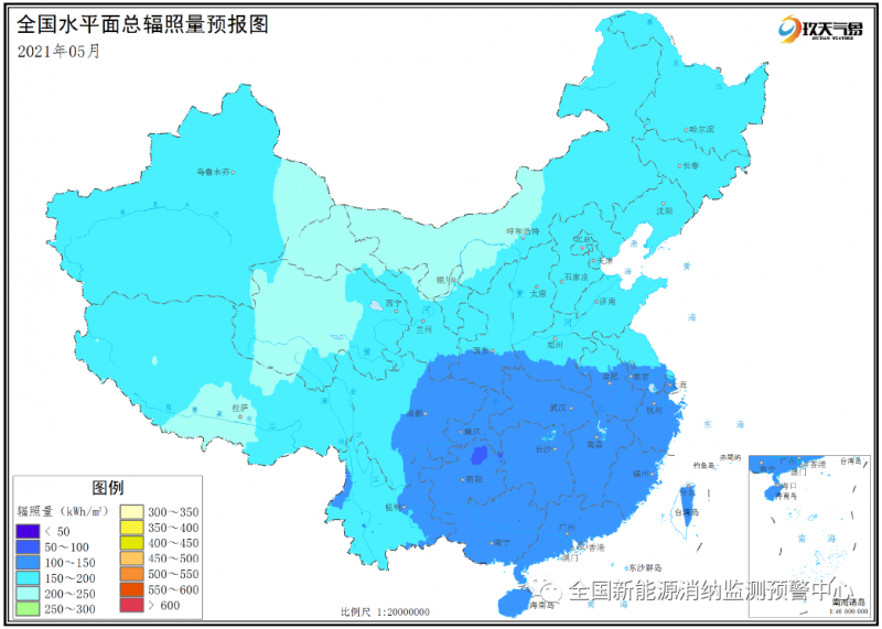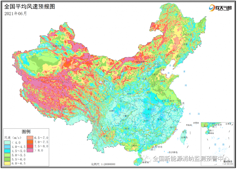 根据中国气象局预测,风能资源方面,2021年二季度随着月份递增,全国大部地区风速呈减小趋势。风速高值区主要位于东北地区、内蒙古、西北地区中部、青藏高原、川西高原、云贵高原等地,上述地区4月和5月平均风速超过7.0m/s,6月平均风速超过6.0m/s;风速低值区一般位于新疆西部和中部、西南地区东北部和南部、江汉、江南、华南等地,平均风速一般低于5.0m/s;除上述以外的其他地区风速一般在5.0m/s——6.0m/s之间。太阳能资源方面,2021年二季度全国大部地区平均水平面总辐照量呈现逐月增加的趋势。平均水平面总辐照量低值区主要位于西南地区东部、华南大部、江南南部等地;高值区主要位于西南地区西部、西藏地区、西北地区西部和中部、内蒙古、华北北部等地。