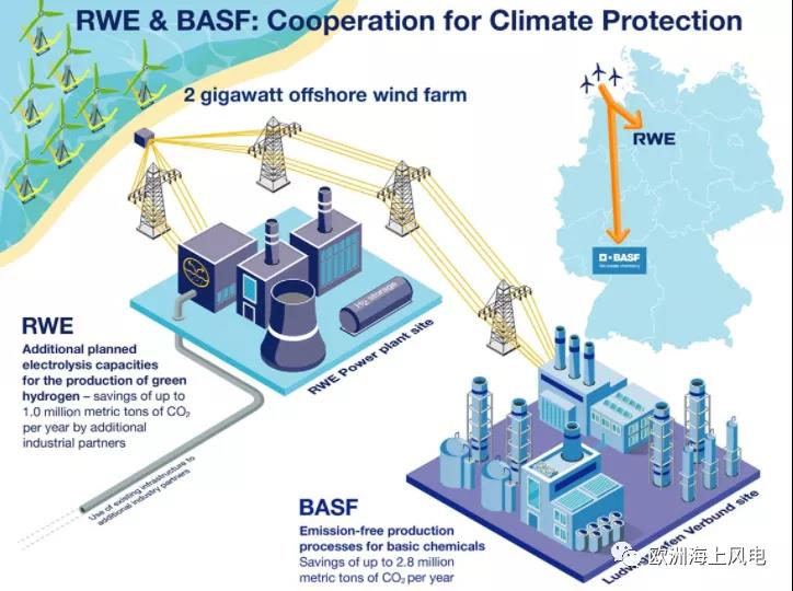 近日,化工巨头巴斯夫(BASF)和莱茵集团(RWE)提出在德国北海区域共同开发建设2GW海上风电,项目将为德国路德维希港的巴斯夫化工厂提供电力,并生产“绿氢”。