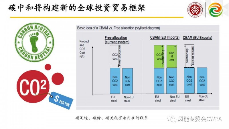 另外要强调的是,碳中和不仅仅是一个大国担当的姿态,也是未来构建新的全球投资贸易格局的重要约束。国际上很多公司都宣布率先实现零碳,比如欧莱雅已经宣布所有产品实现零碳。宝钢的同事告诉我,卖到欧洲的钢材如果不能够提供碳标签的话,就不能出口。欧洲也正在倡导一个碳边境调节机制的制度,认为需要类似于碳关税这样的机制来保障减排效果。中国在试点碳交易市场的十年过程当中,二氧化碳的平均价格大概是不到24元人民币每吨,欧洲现在达到了40欧元每吨的水平,碳的价格全球会有很大差异。对于碳的边境调节机制我们认为合法性、操作性和有效性都有问题,可是我们也应该看到,包括像美国等国家都在积极的呼应碳关税这样的机制。在未来,如果不能做到更加低碳,更加可持续的模式的话,我们实现民族复兴的伟大愿望就会面临很大挑战。碳中和产生的新的贸易投资格局可能比加入WTO对我们经济的影响还要大。