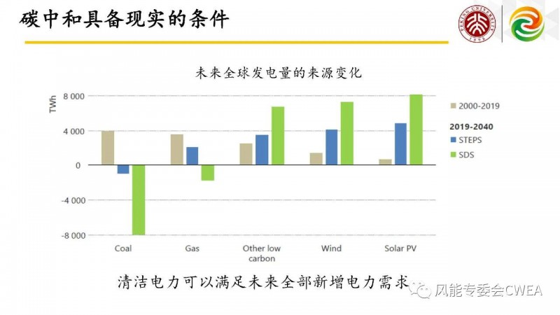 碳中和具备实现的条件。从全球来看,由于技术进步,在过去十年中,清洁发电技术由于成本高速下降,已经成为实实在在的引领者。国际能源署在去年的《全球能源展望》报告中提出,在未来“清洁电力可以满足全部新增电力的需求”。我清楚记得,2016年我刚到国际能源署(IEA)工作的时候,当时还说是85%,短短四年时间过去,这个数字就变成了100%。可以说,在这么短的时间里实现这些突发猛进的进展,技术进步给了相关行业和各国政府以更大的信心。