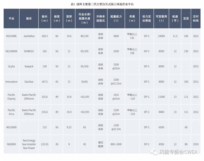 2010 年前后,欧洲推出第三代自航自升式海上风电作业船型。