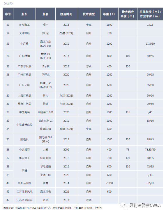 国内主要海上风电吊装施工船列表