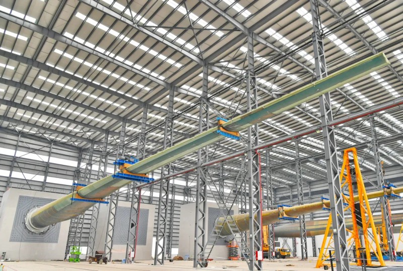 据介绍,“国家海上风电装备质量监督检验中心”,是国内唯一国家级海上风电装备公共技术研发实验平台,也是迄今为止世界上最大的叶片检测实验室,可以开展150米级叶片全尺寸试验的实验室,其试验和验证将为海上风电技术创新与发展提供基础支撑。除了叶片全尺寸实验室已开展叶片测试业务,整机实验室也于今年1月投入运行,未来可满足15兆瓦级海上风电机组认证检测需求。