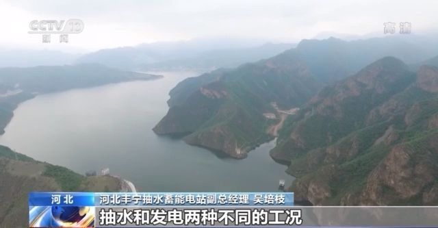 河北丰宁抽水蓄能电站副总经理 吴培枝:抽水蓄能电站拥有抽水和发电两种不同的工况。在抽水的时候,它就能将风电和太阳能这个多余的电力存储起来,变为水的势能。当用电高峰期的时候,可以将水的势能转化为电能,这就是我们的发电状态。所以说我们这个抽水蓄能电站就是我们电力系统一个巨型的充电宝。