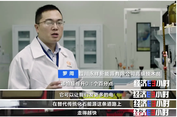 升级后的电池片,光电转换效率高达24%,这是新的世界纪录。像这样的电池片,在这条新的生产线,每年可以产出超过5040万片,如果把它们全部安装,每年可以发电约4.5亿度。