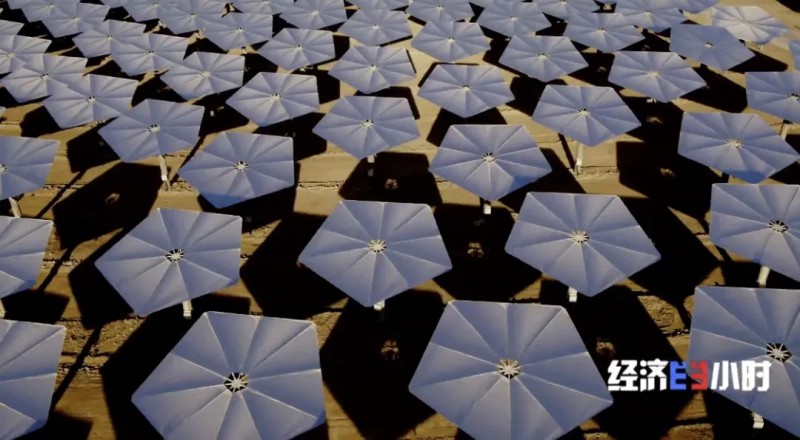 数万面的镜子,可以把阳光反射到181米高的塔顶,集热器充分吸收热量后,温度超过560℃。