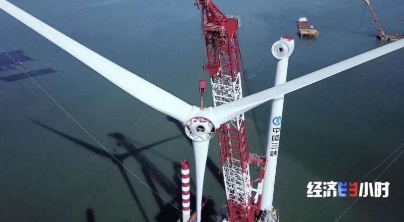 福建兴化湾,安装着中国首台亚太地区单机容量最大的10兆瓦海上风机。风机单只叶片的设计长度达90米,叶轮组装完成后,叶轮直径185米,相当于三台波音747并排的宽度。