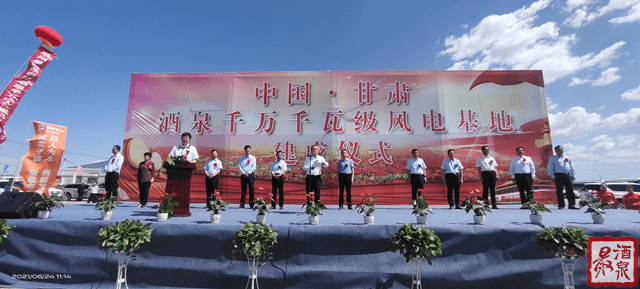 6月24日,酒泉千万千瓦级风电基地建成仪式在酒泉瓜州县安北第一风电场举行,标志着全国首个千万千瓦级风电基地在酒泉建成。