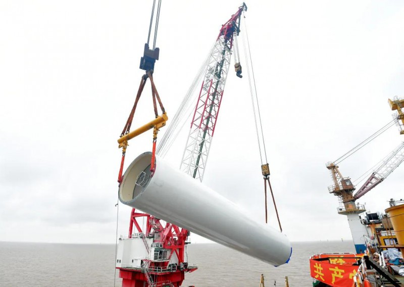 海上风电项目(下简“奉贤项目”)顺利完成首台机组吊装。该项目位于奉贤区杭州湾北部海域,建设容量20万千瓦,由上海海湾新能风力发电有限公司(下称“海湾新能”)开发。此次首吊机型为金风科技GW184-6.45MW海上机组,该款机组搭载90米叶片,采用定制化降载策略及技术方案,在保障机组可靠性和安全性的前提下,能显著提升发电效益。