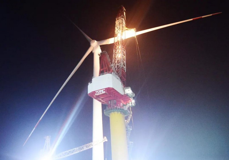 风场首台F1机位吊装恰逢全年水文状况最恶劣的大潮汛,海湾新能与