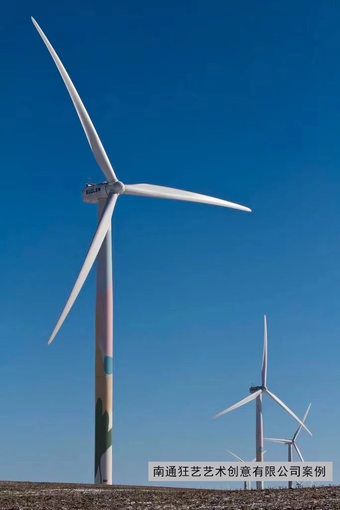 彩绘涂装的风电除了与众不同之外还能成为当地政府的宣传载体,南通狂艺艺术创意有限公司可以根据当地的文化及相关部门的要求进行原创图案设计然后再通过彩绘涂装的工艺展现在风电上,让普通的风电更有文化艺术感!