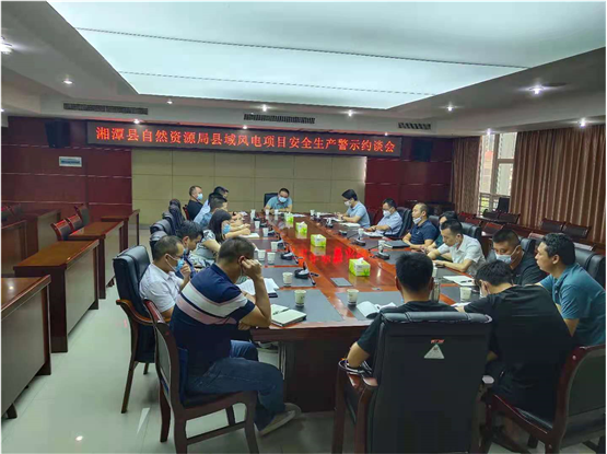 近日,湘潭县自然资源局针对当前县域风力发电项目违法用地及存在的安全隐患问题,组织约谈了昌山风电公司、湖南能创公司、大唐湘潭发电公司三家企业项目负责人,会议由分管执法工作的局党委委员、副局长冯光志同志主持,风电项目属地乡镇人民政府、自然资源所和相关局业务股室人员参加会议。