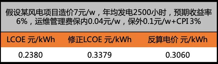 经过上述调整,LCOE即可转化为目标收益率下的含税电价,但由于所得税、增值税等因素的非线性影响,针对某一特定项目,修正LCOE仍然只能相对接近却无法精准测算目标收益率下的上网电价。不过两者的差异已经明显缩小,而且变化方向一致,指标在个体项目的应用上会更有意义。