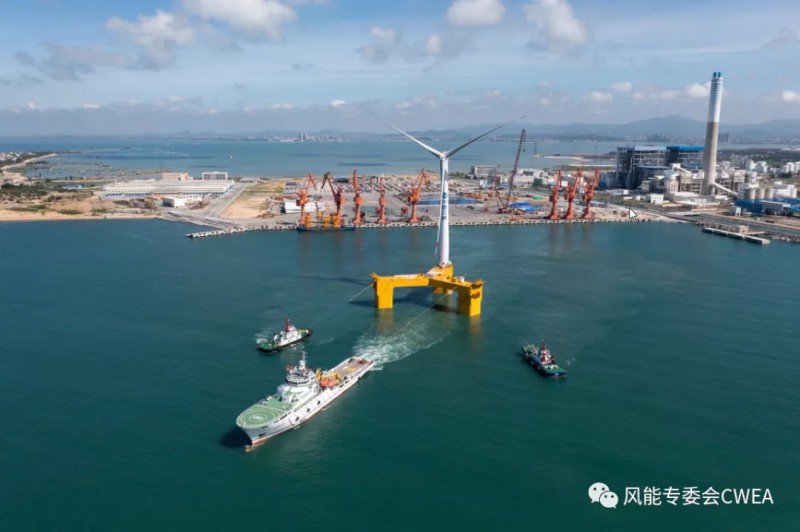 我国首台漂浮式海上风电机组启运。点击图片播放安装、启运、到位全程快放视频。