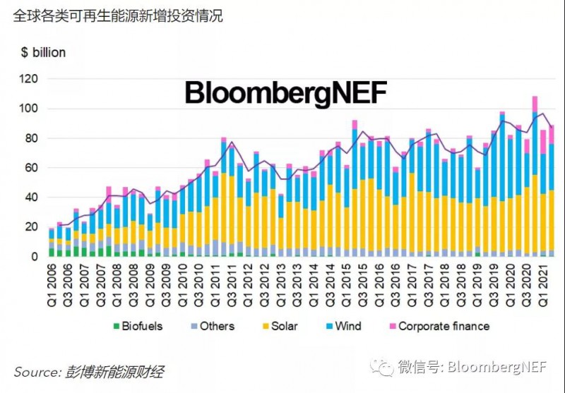 2021年上半年全球可再生能源新增投资总额