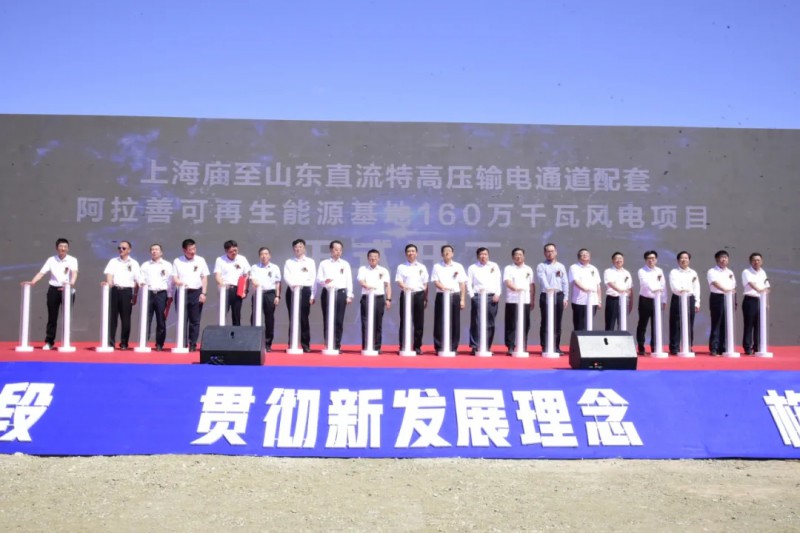 8月26日,上海庙至山东直流特高压输电通道配套阿拉善可再生能源基地160万千瓦风电项目在阿左旗敖伦布拉格镇开工建设。