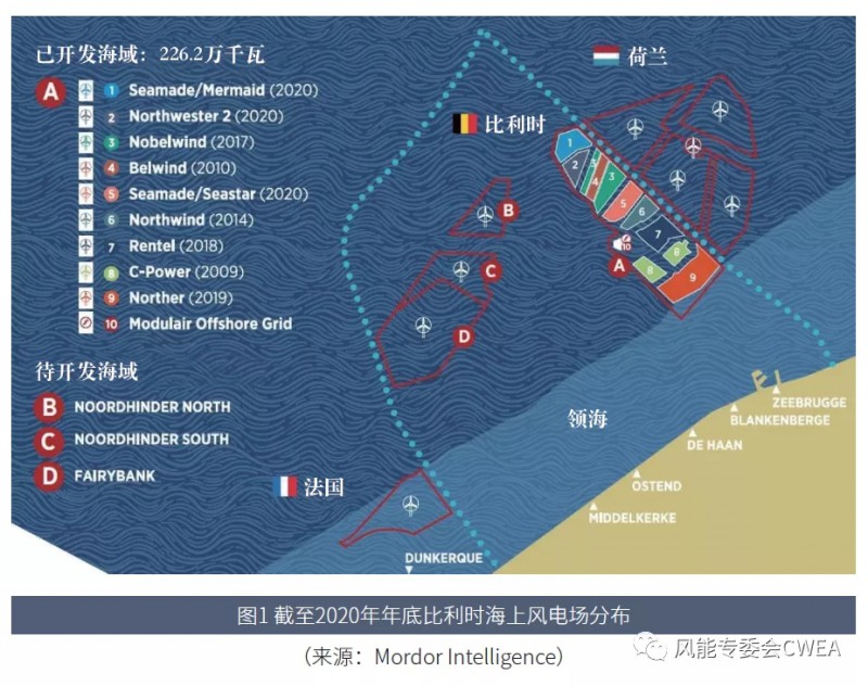 2004年,比利时政府在其海上专属经济区划出154平方千米海域,开始规划发展海上风电。