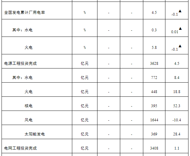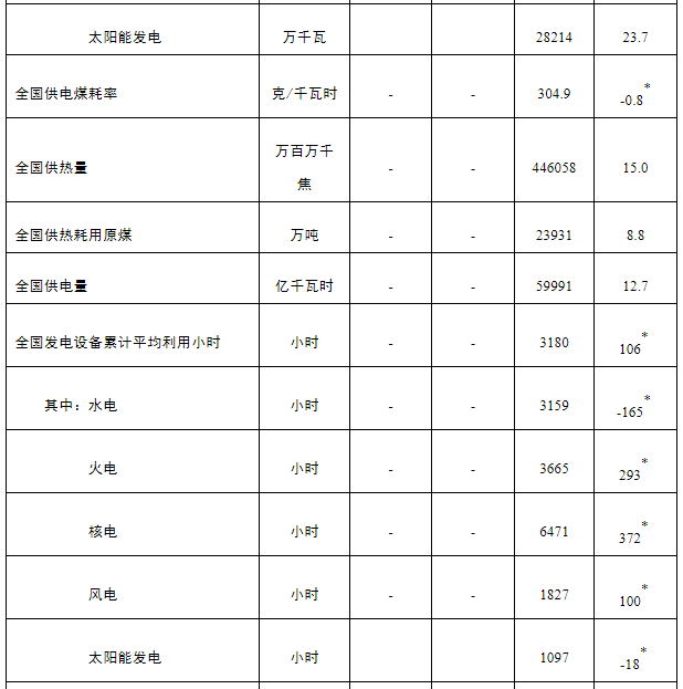 注:1.全社会用电量为全口径数据,全国供电量为调度口径数据。2.“同比增长”列中,标*的指标为绝对量;标▲的指标为百分点。