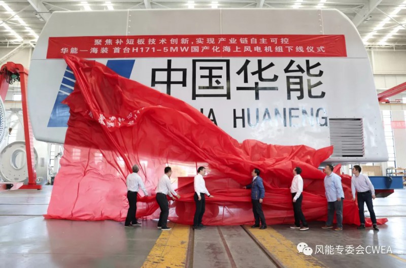 脱胎于军工领域,中国海装自然深知自主掌握核心技术的重要性。基于此,这家企业始终积极推动实现国内海上风电产业链的国产化。今年的5月22日,中国海装下线了首台H171-5MW国产化海上风电机组,一级部件国产化率达到100%、整机国产化率超过95%,叶片、主轴承、齿轮箱轴承、主控PLC、变流器IGBT等一系列核心部件均实现国产化。