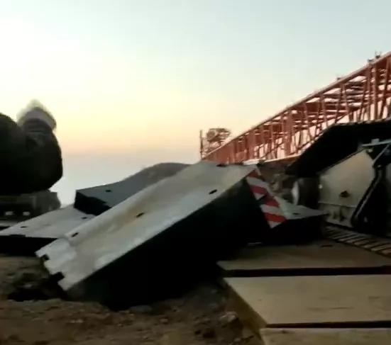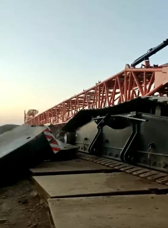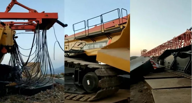 近日,一辆800吨履带吊车在某风电场吊一段风机塔筒时发生意外,吊车车身吊臂、各个部件损毁严重,造成上千万损失!