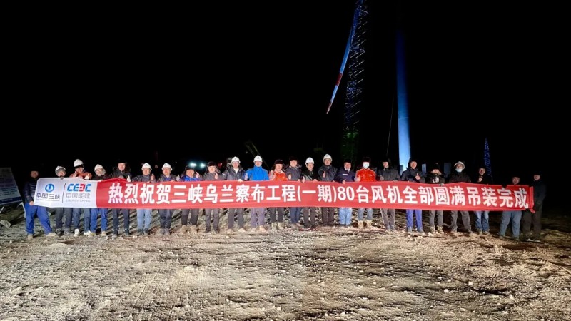 11月22日18点37分,内蒙古三峡乌兰察布新一代电网友好绿色电站示范项目一期工程现场,气温已达零下十几度,随着最后一台风机吊装完毕,现场人员在凛冽的寒风中迸发出一阵热烈掌声。至此,该项目一期工程完成全部80台风电机组吊装,取得年底全容量并网发电“战役”的阶段性胜利。