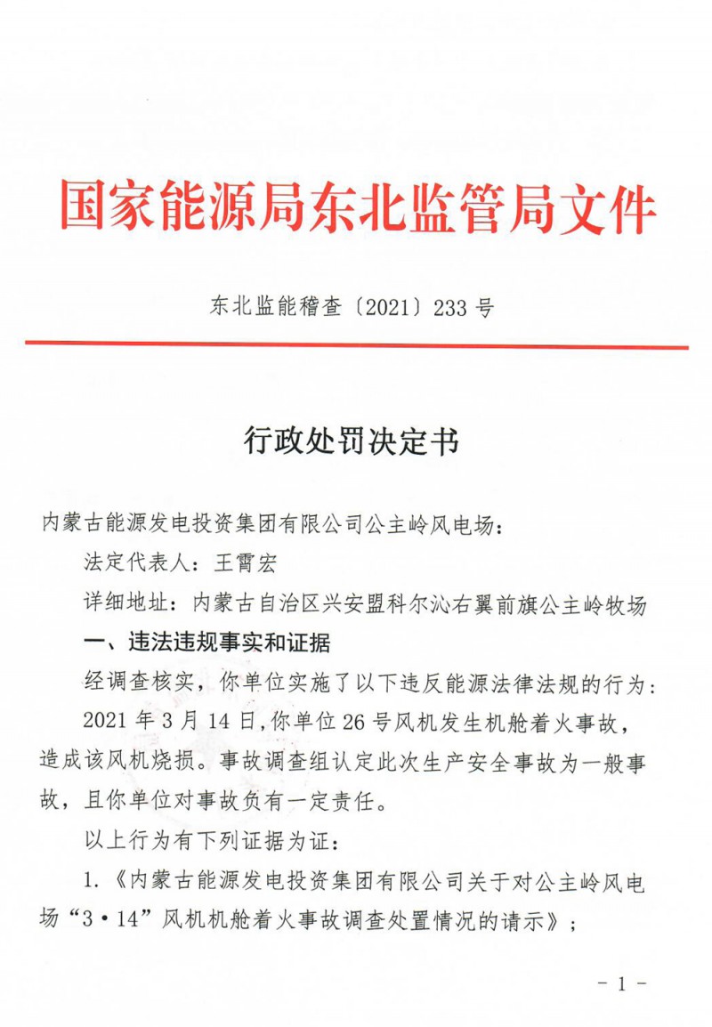 国家能源局东北监管局发布《事故通报》,对3月14日内蒙古能源投资集团公主岭风电场26号风机机舱烧损事故做出初步回应:该事故火灾原因初步判断为变频器故障引起,事故调查仍在进行中。通报指出,事故发生暴露出部分电力企业在设备日常巡视维护、安全风险管控和隐患排查治理等方面依然存在薄弱环节。因此,国家能源局东北监管局明确,要强化红线意识,压紧压实安全生产主体责任;加大风险管控和隐患排查力度;严格执行防止风力发电机组发生火灾的各项规定。