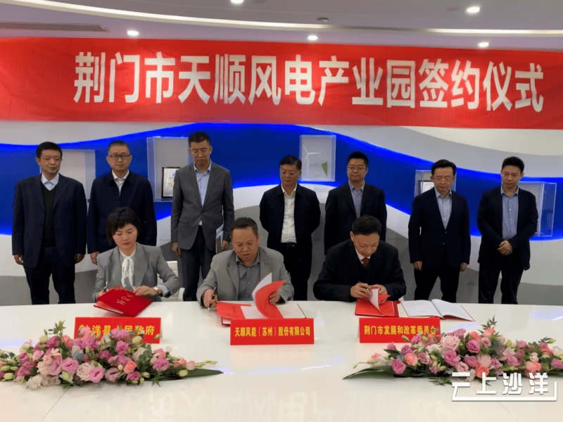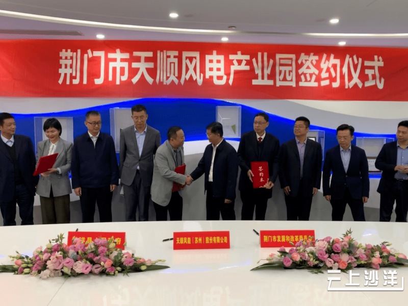 11月22日,荆门市天顺风电产业园项目在上海市天顺风能(苏州)股份有限公司正式签约。