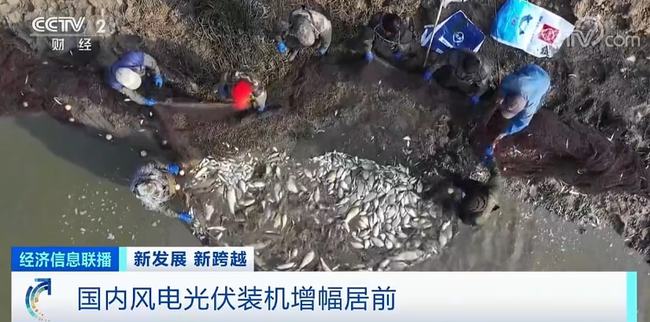 在江苏盐城建湖县的国能渔光互补农业示范项目,当地村民正在捕鱼收网,村民顾英勇告诉记者,他将土地流转给光伏项目每年有两三千元的收入,同时还到项目打工赚钱,负责渔场的管理。