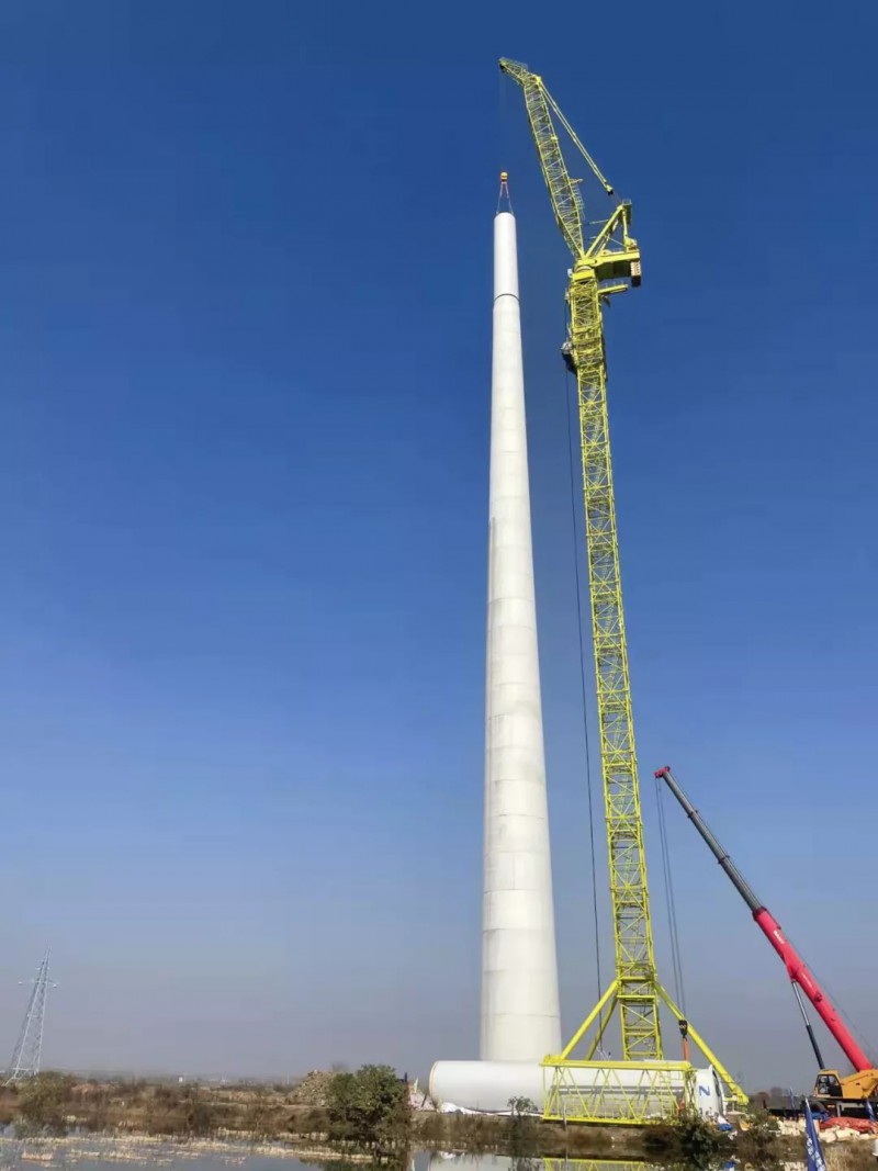 近日,清云智慧能源封丘县一期40MW风电场项目金风科技亚洲最高165m超高钢柔塔GW165-4.0机组暨6MW风电吊装利器--金利重科JLD2250-180t风电塔机首吊成功仪式在封丘现场举行,会议邀请了主机厂家、业主单位、EPC、电建企业、吊装公司等行业代表参加。