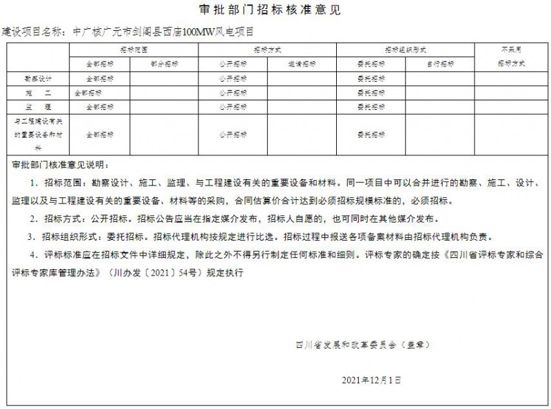 项目招标事项核准意见见附件。应严格按照《中华人民共和国招标投标法》及其实施条例、《四川省国家投资工程建设项目招标投标条例》等规定和本核准要求开展招标投标活动。