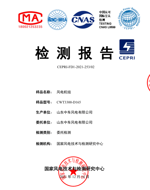 近日,中车齐车集团山东中车风电公司CWT3300-D165风电机组涉网测试在中国电科院张北试验基地以2天时间刷新了国内高低穿测试最快通过记录,成功取得检测报告。