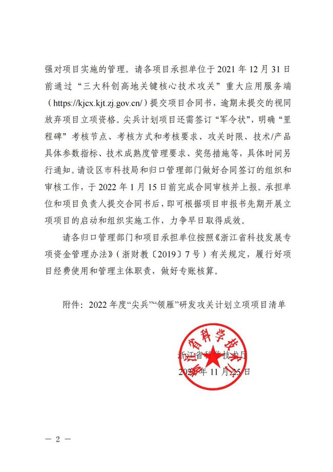 “尖兵”“领雁”研发攻关计划是由浙江省省级财政资金设立,面向世界科技前沿、面向经济主战场、面向国家和浙江重大需求、面向人民生命健康,开展重点技术领域的前沿科学问题研究、重大关键核心技术攻关、重大社会公益性研究、重大国际科技合作等研究活动的科技计划。