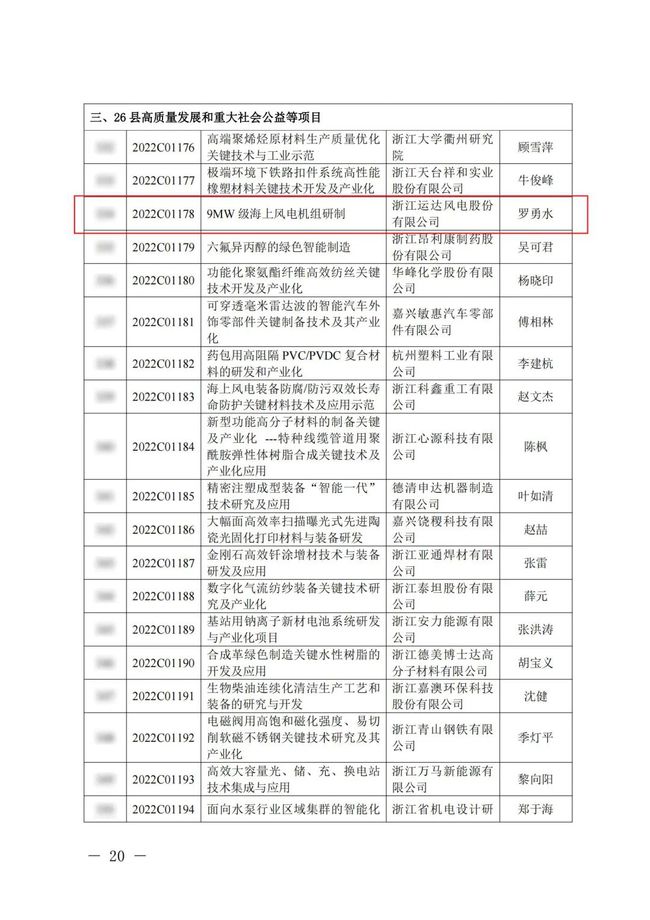 近日,浙江省科技厅公布2022年度“尖兵”“领雁”研发攻关计划第一批立项项目,由运达股份牵头主持的“9MW级海上风电机组研制”项目脱颖而出,成功位列其中。这是运达股份实施“科技机电”战略、加快国家建设“创新高地”战略上迈出的坚实一步。