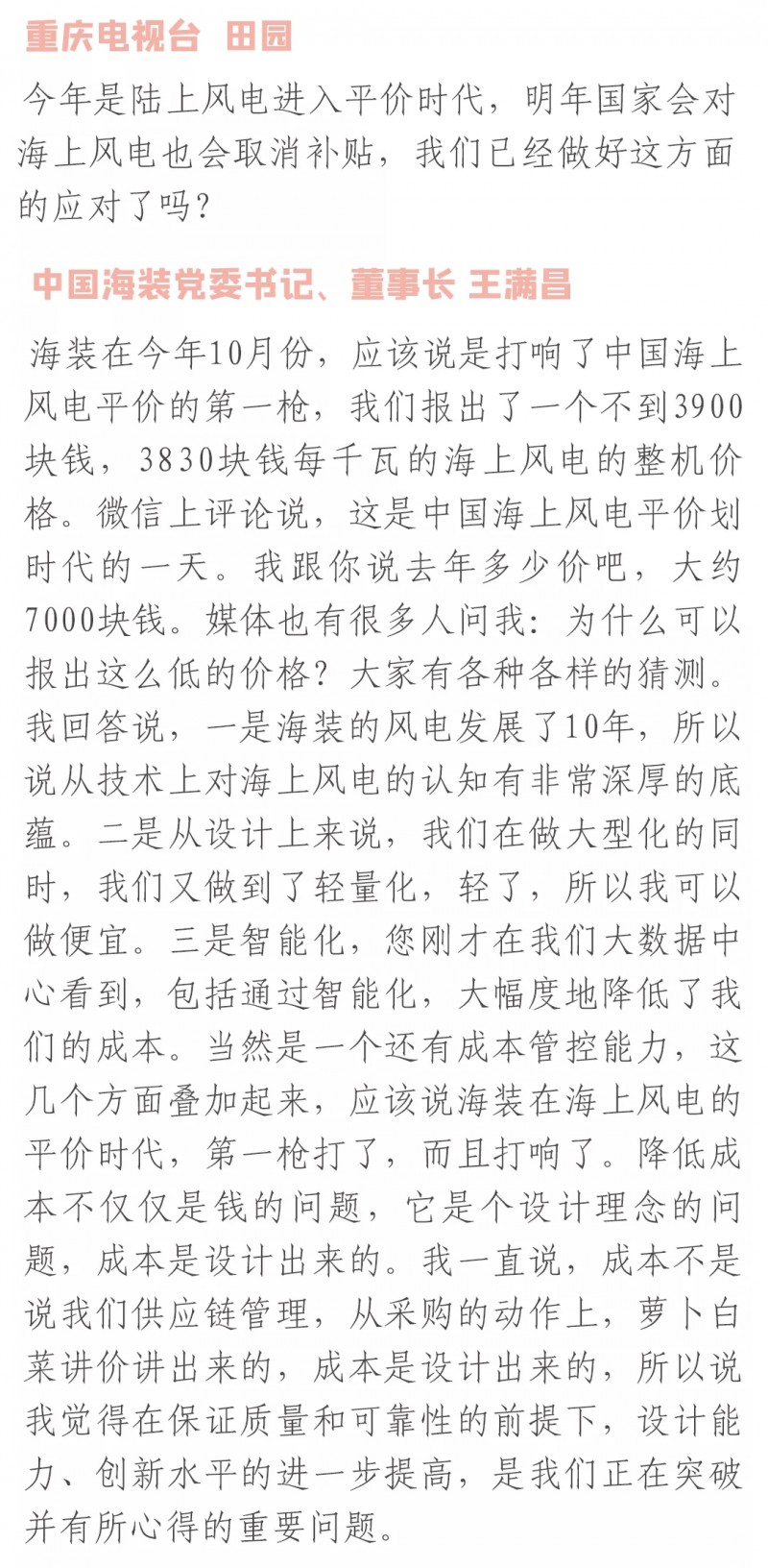 视频丨 对话:创新引领追“风”逐“海”,中国海装开启风电平价新时代