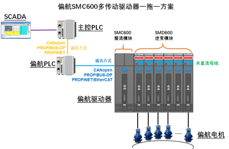 它具有如下特点:书本式安装使得结构紧凑,节省柜体空间;合理分配负载,防止负载不平衡,减少机械振动和系统噪音;机组稳态和动态调速性能好,低速带载能力强,同步性高;单个模块故障,整个系统不会停机,保证发电量;阻尼电机产生的电能可供驱动电机利用,提升电能效率,降低制动电阻成本;支持多种通讯总线;可监测每个电机的运行参数,及时了解运行状况;