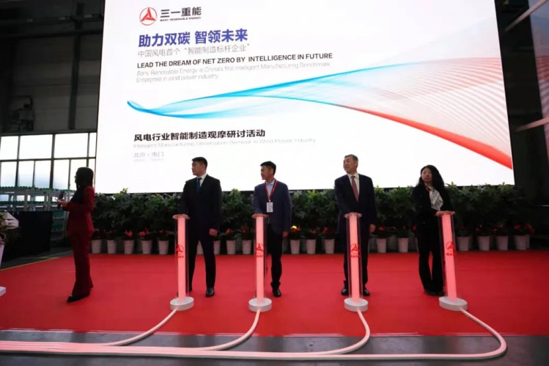 北京市经信局副局长王立勋,昌平区经信局党组书记、局长张劲柏,中国电子技术标准化研究院物联网中心副主任卓兰,国家应对气候变化战略研究和国际合作中心首任主任、中国能源研究会常务理事李俊峰,三一重能首席数字官彭旭,三一重能副总经理余梁为,三一重能制造总监贺城元出席仪式并共同为工厂揭牌。