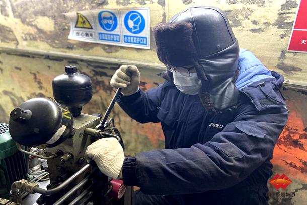 图为检修人员紧固油管接口