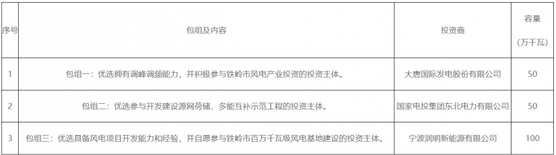 包组二投资商由国家电投集团东北电力有限公司获得,容量规模为500MW;