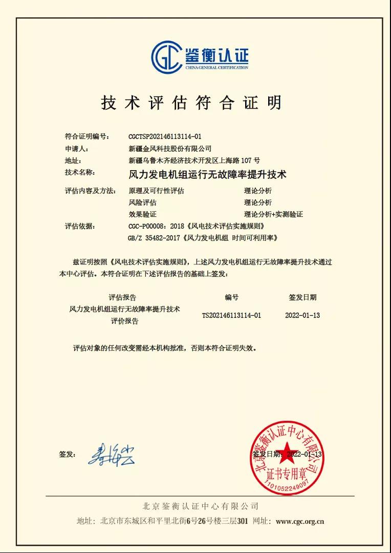 近日,金风科技的风力发电机组运行无故障率提升技术获得北京鉴衡认证中心的技术认证,该评估认证依据《风电技术评估实施规则》,采用理论分析和实测验证的方法,经过对技术原理及可行性评估、风险评估和效果验证,正式完成技术认证。