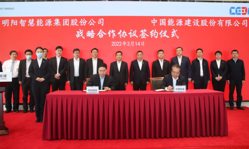 会谈后,明阳智能执行总裁、北京洁源副董事长刘连玉,中国能建党委常委、副总经理吴云代表双方签署战略合作协议。根据协议,双方将本着优势互补、互利互惠、共同发展、合作共赢的原则,建立战略合作伙伴关系,在科技研发、产业协同、重点项目、国际市场等领域形成全方位紧密合作关系。