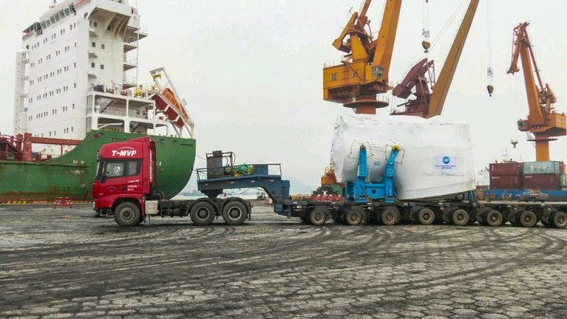 3月29日,笔者走访阳江港发现,明阳智能阳江海上风电智能制造中心首批销往海外的风力发电机组正在阳江港7号码头装船,即将启程运往越南金瓯。